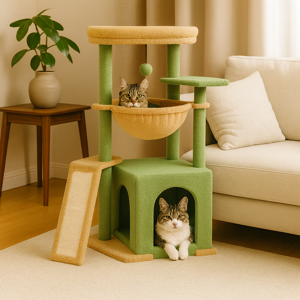 Offrez-lui un arbre à chat conçu pour son bien-être : un espace douillet où il peut jouer, se reposer et griffer… sans détruire votre intérieur.Résultat ?
