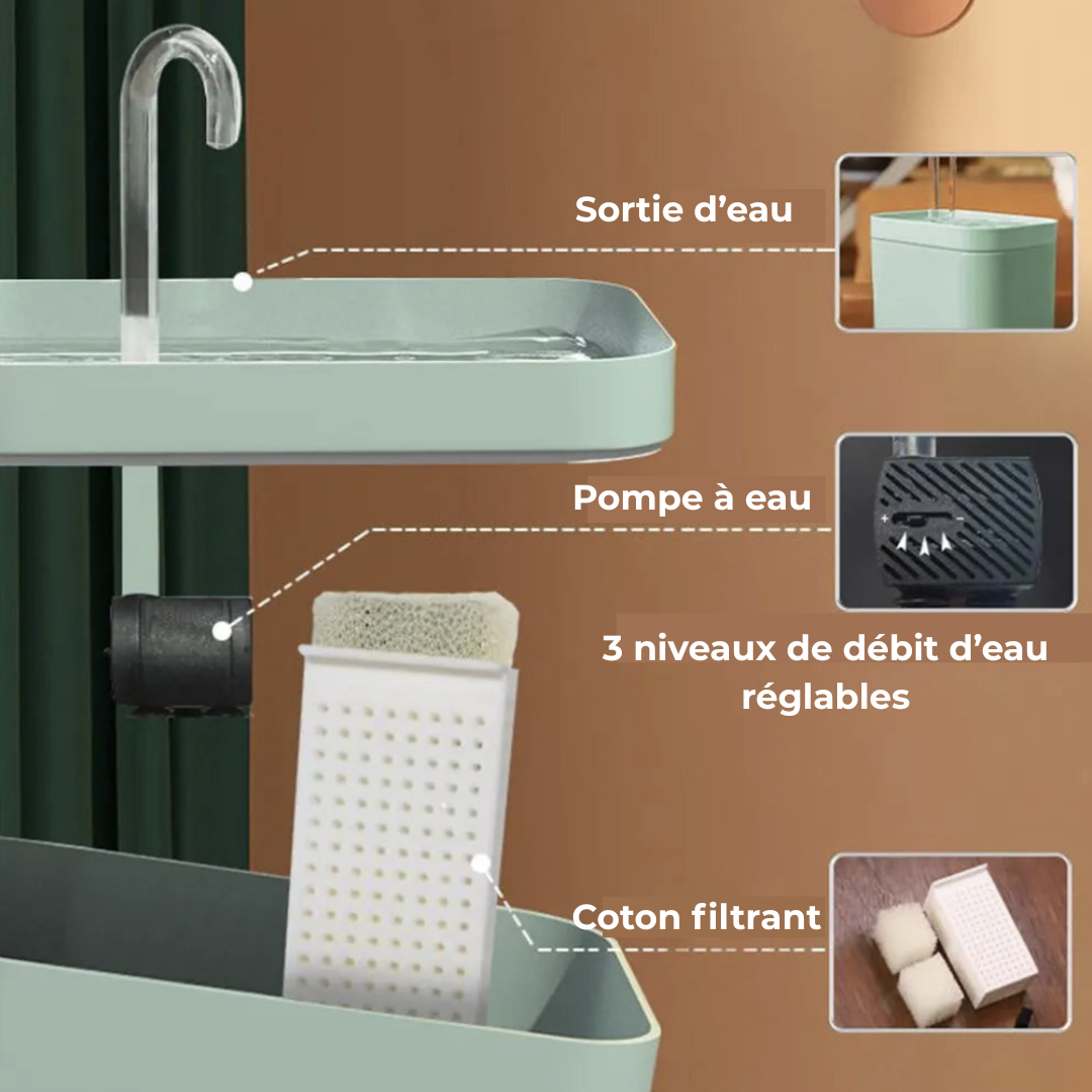 Grâce à sa pompe réglable à 3 niveaux et à son système de filtration en coton, cette fontaine assure une eau propre, filtrée et en mouvement constant pour encourager votre chat à boire davantage. Idéal pour sa santé et son bien-être quotidien.